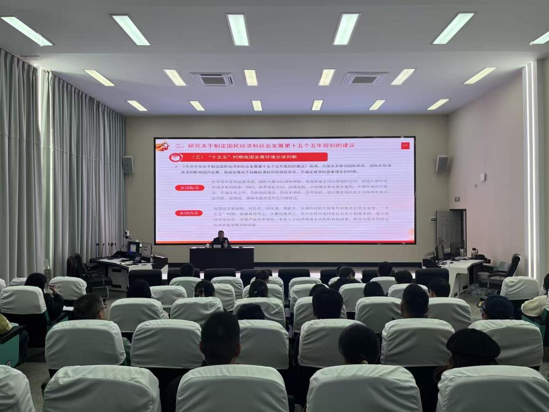 他从“十四五”时期我国在经济实力、科技自立自强、民生福祉等领域取得的历史性突破切入,用“GDP年均增长5.2%”“全球制造业第一大国”等数据,让师生直观感受到国家发展的强劲脉搏。并立足我校发展实践,分享了“十四五”期间学校在学科生态建设、核心指标实现等五大方面的重点突破。锚定未来,针对学校“十五五”发展规划,从高质量推动师资队伍建设、对外合作交流、学科建设和人才培养等四个层面提出思考,他提出,全校师生要以全会精神为指引,在十五五期间实现“质的飞跃”,让每一位师生都能在学校发展中找到自己的坐标。