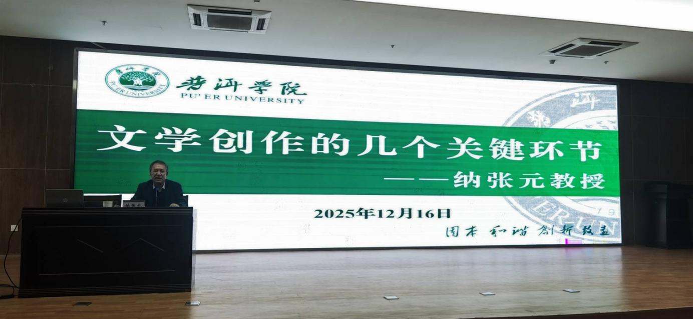 为提升人文学院师生文学创作能力,拓宽学术视野,提高文学素养,2025年12月16日,人文学院特邀大理大学文学院院长,知名作家纳张元教授在图书馆报告厅开展《文学创作的几个关键环节》的专题讲座。学院相关师生积极参与,现场学习氛围浓厚。
